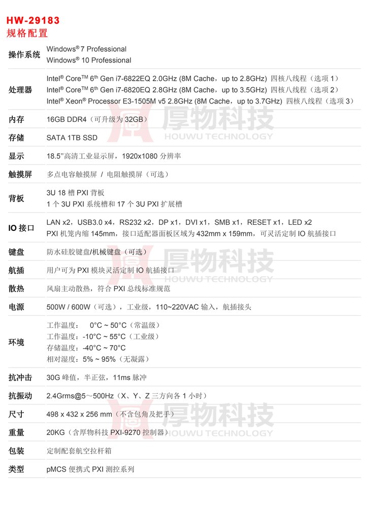 重量 | 20KG(含厚物科技PXI-9270控制器) | ||