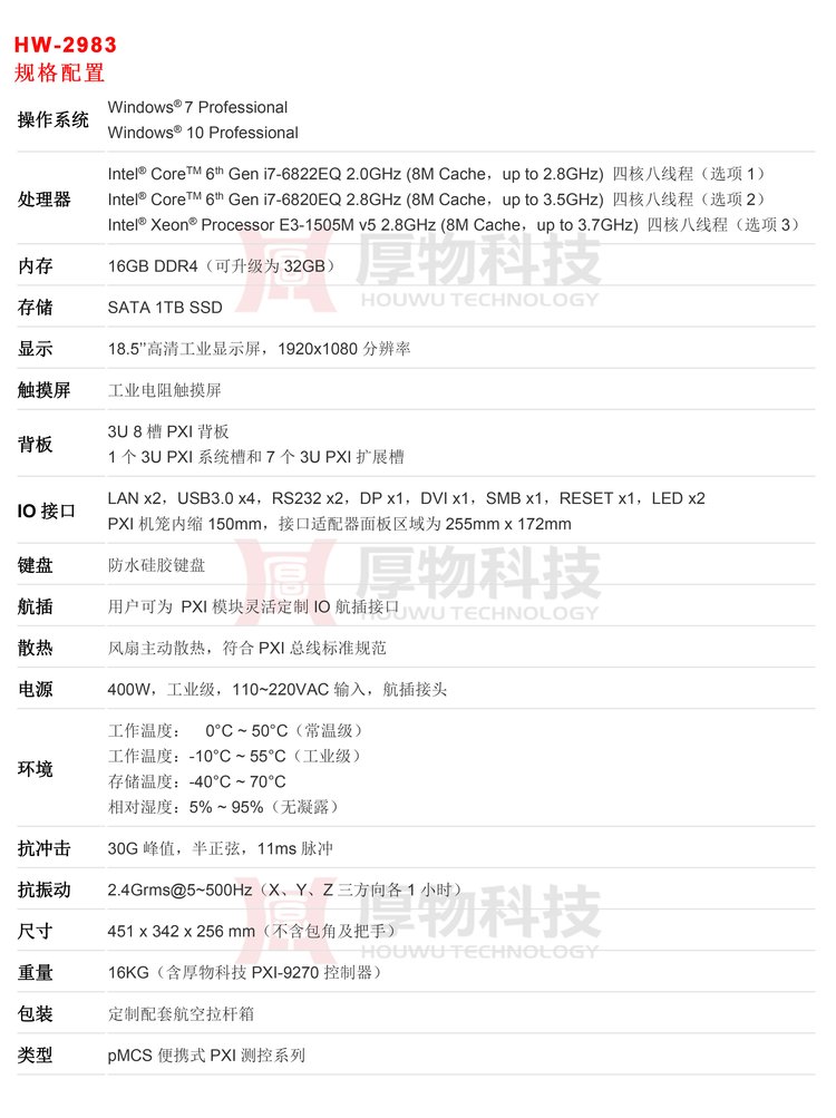 重量 | 16KG(含厚物科技PXI-9270控制器) | ||