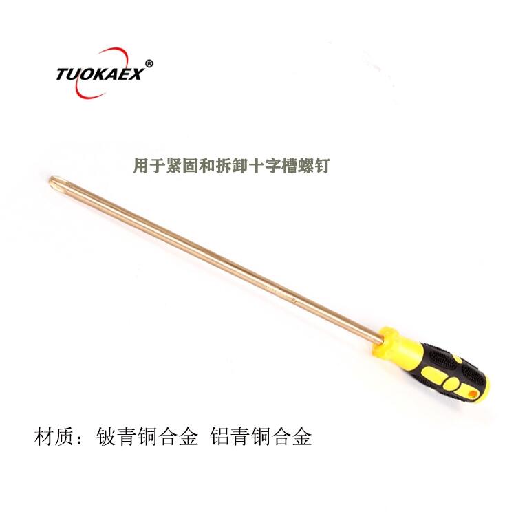材质:铝青铜、铍青铜 铝青铜材质,工作面硬度HRC25°以上,抗拉强不低于δ b 75-85kgf/mm2属国家ⅡB级产品,在浓度7.8%的乙烯气体中作业不引爆气体; 铍青铜材质,工作面硬度HRC35°以上,抗拉强度δ b>105-120kgf/mm2,属国家ⅡC级产品,在浓度21%的氢气中作业不引爆气体;铍铜合金防爆工具还具备特殊的防磁功能,在有磁场的工作环境中能够正常使用。 以上两种材质防爆工具能有效的防止工具与工作物相互摩擦、撞击时产生的可燃性爆炸,确保国家财产和人身安全! 适用场所:石油、化工、矿山、防恐怖、防磁场、煤矿、采气、油气管道、发电、冶金、军工、航空、储运、制药、制气、塑料、化纤、皮革、烟火、爆竹等