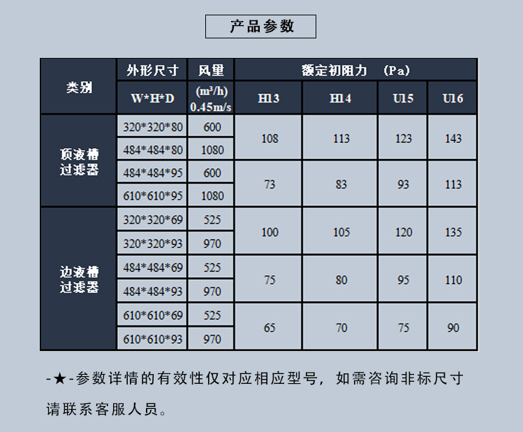 净化率 | H13、H14、U15、U16、U17 | ||