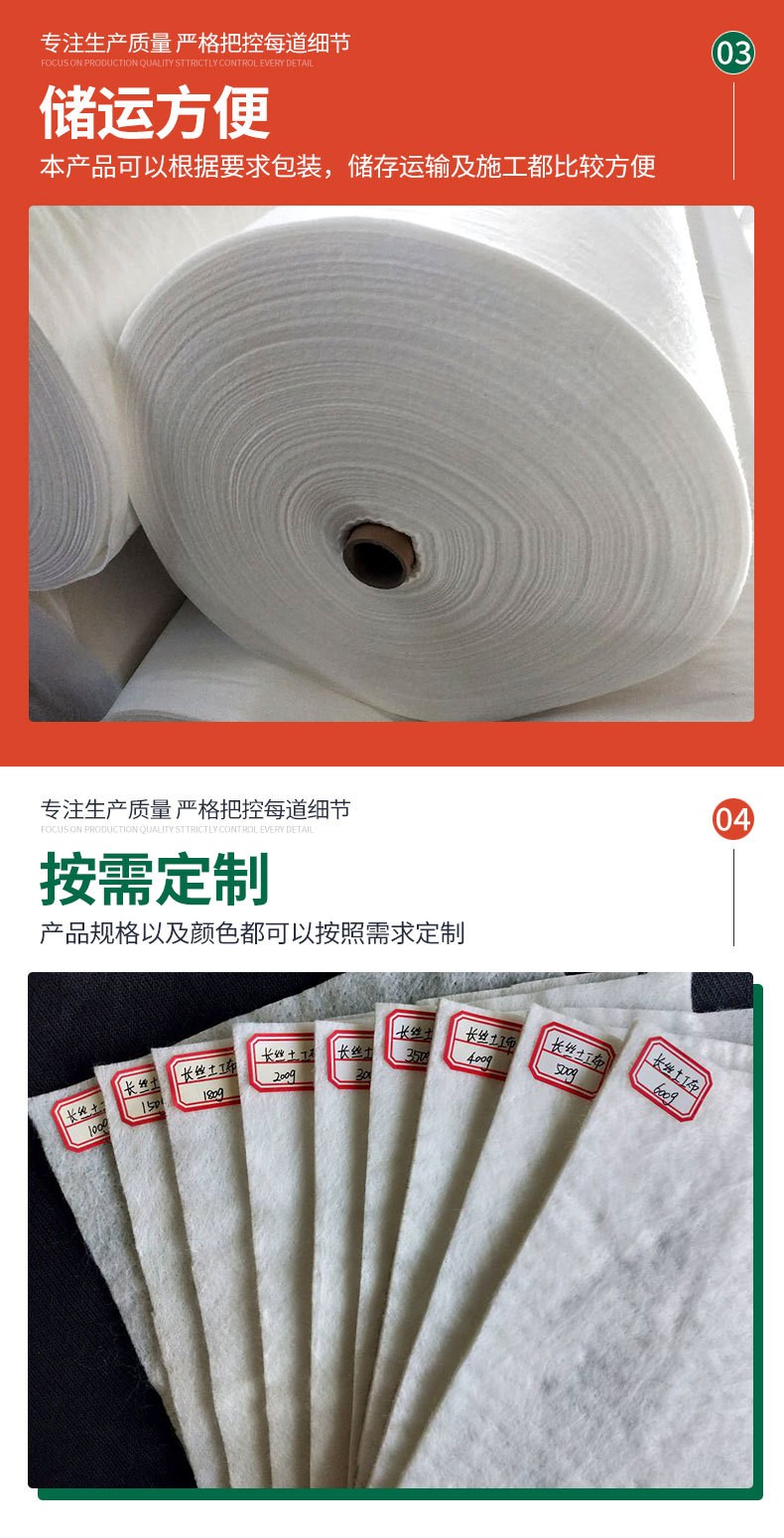 土工布生产厂家绿色防尘盖土工耐酸碱无纺布长丝短丝布