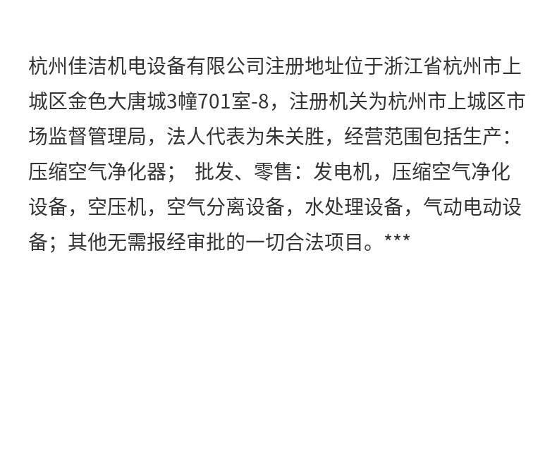 商铺名称:杭州佳洁机电设备有限公司(私营独资)
