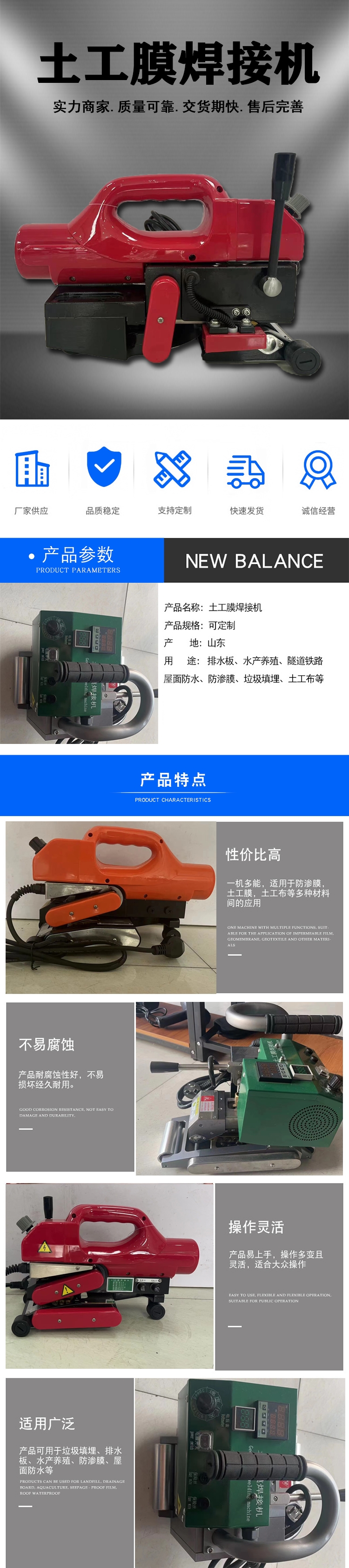 适用产品 | 防水板、防渗膜、复合土工膜、排水板、EVA防水板的焊接 | ||