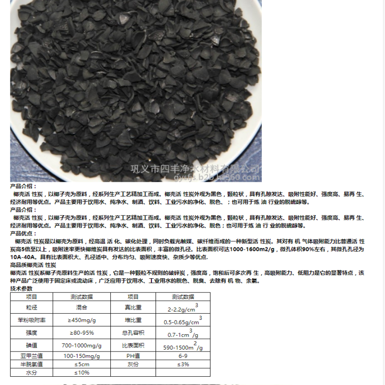 椰壳活性炭污水处理1000碘值椰壳炭净水净气滤料
