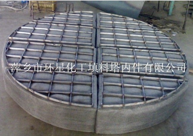 金属丝网除沫器结构主要是由丝网格栅组成的丝网块和固定丝网块的支承装置构成,丝网为各种材质的气液过滤网,气液过滤网是由金属丝组成。金属丝由多股金属纤维捻制而成,亦可为单股金属丝。该丝网除沫器不但能滤除悬浮于气流中的较大液沫,而且能滤除较小和微小液沫。