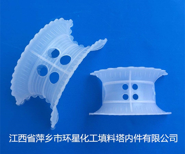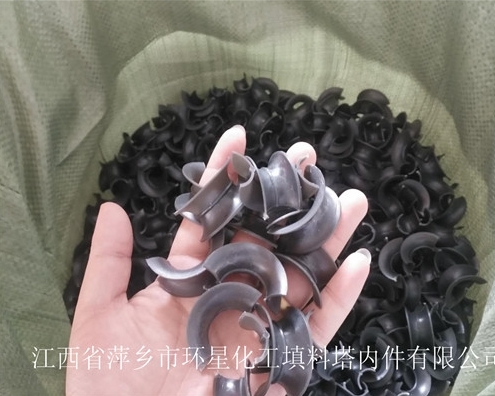 塑料散堆填料矩鞍环填料类似于鞍形状,兼有两者之优点这种填料层中主要为弧形的液体通道,填料层内的空隙较环形填料更加连续,使气体沿弧形边通道流动,这种结构有利于液体分部和增加了气体通道,比鲍尔环阻力小、通量大、效率高。填料强度和刚性较好,是目前应用zui广的一种散堆填料