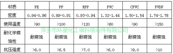 1)环星牌”塑料阶梯环填料各类材质性能如下:
