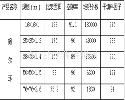 以下就是增强聚丙烯鲍尔环的产品技术参数