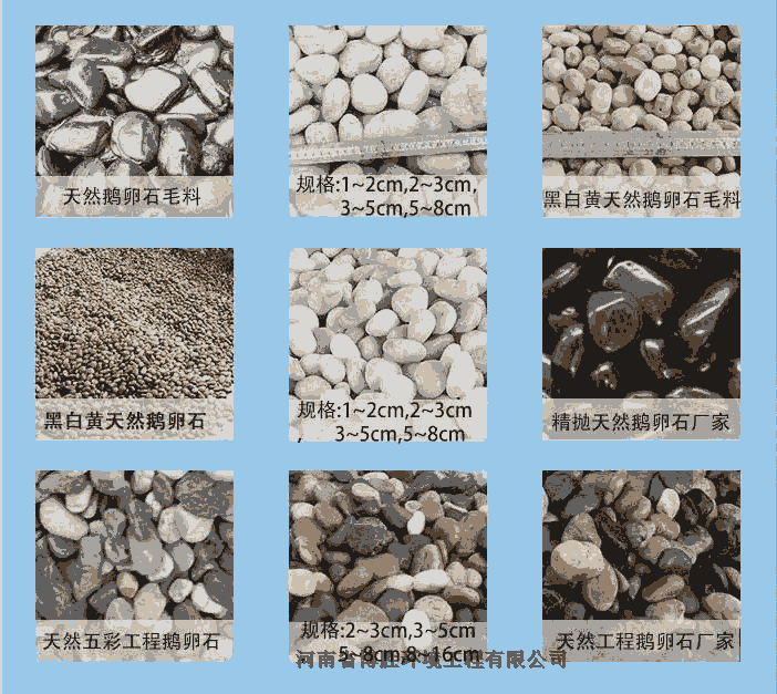 鹅卵石滤料常用规格:2—3cm、3—5cm、5—8cm、8-16mm、16-32cm。