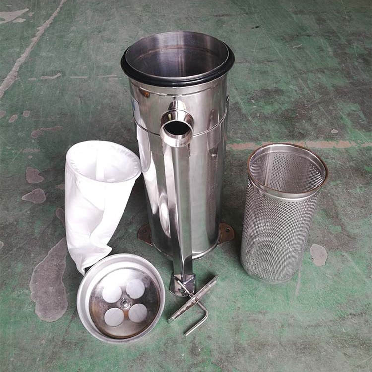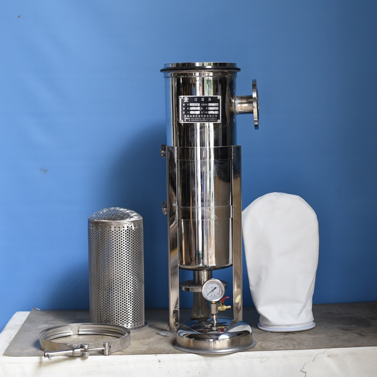 袋式过滤器是一种压力式过滤装置,主要有简体,不锈钢滤篮和滤袋等主要部件组成。液体由进水口流经滤袋过滤后从出口流出,杂质被拦截在滤袋中,滤袋可更换或清洗后继续使用。