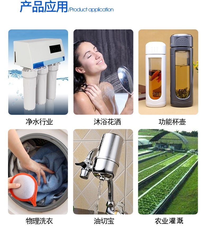 1、水处理:经过远红外球处理过的水分子束小(大分子的水被变为小分子水),而且酸性水会变为对人体有利的弱碱性水,口感甜美。