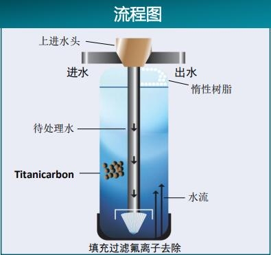 Titanicarbon应用于初始氟浓度为50mg/L的水中,其吸附后出水氟离子浓度为0.5mg/L以下。