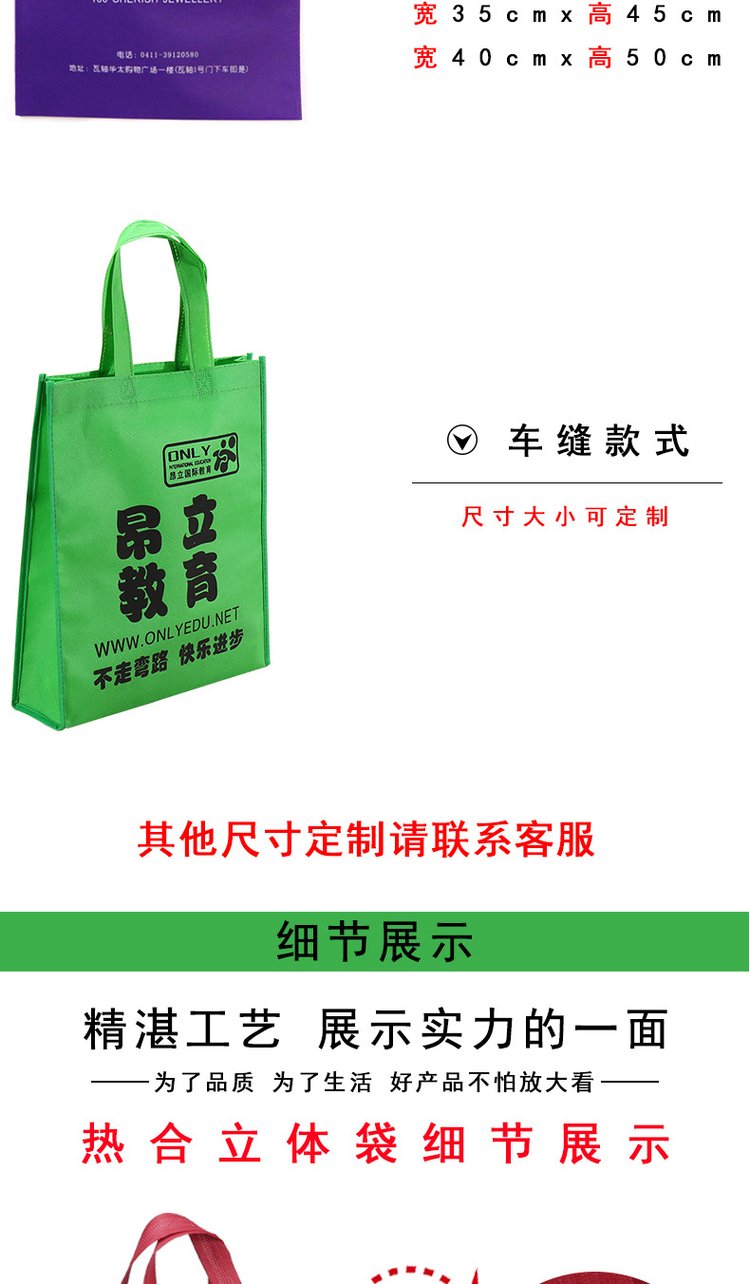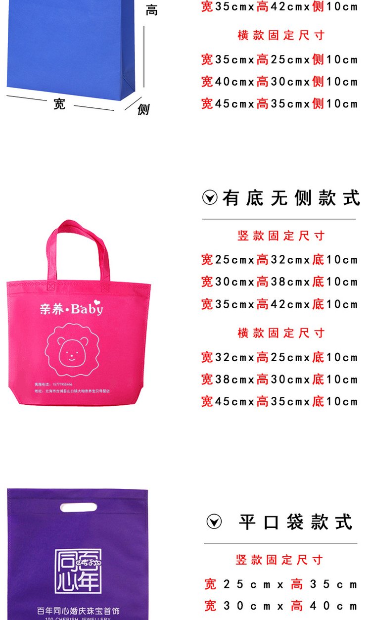 昆明霆尊商贸有限公司,前身是专业的袋子制作工厂,于2010年初成立专业的销售公司。公司集设计、生产、销售为一体,专业为企业定做无纺布袋,环保袋,复膜广告袋,手提袋,帆布袋,牛津袋,西服套,T恤、文化衫、广告衫、围裙、广告围裙、各种布料的围裙。公司的产品以车缝,超声波热压为主,月产三十万只左右的袋子。 公司秉承“质量为本,诚信双赢”的企业理念,为广大客户提供优质的产品,快捷周到的服务。 公司产品款式多种,色彩丰富,可以为客户提供丝印、胶印、烫画、热转移印、刺绣等多种广告工艺效果。