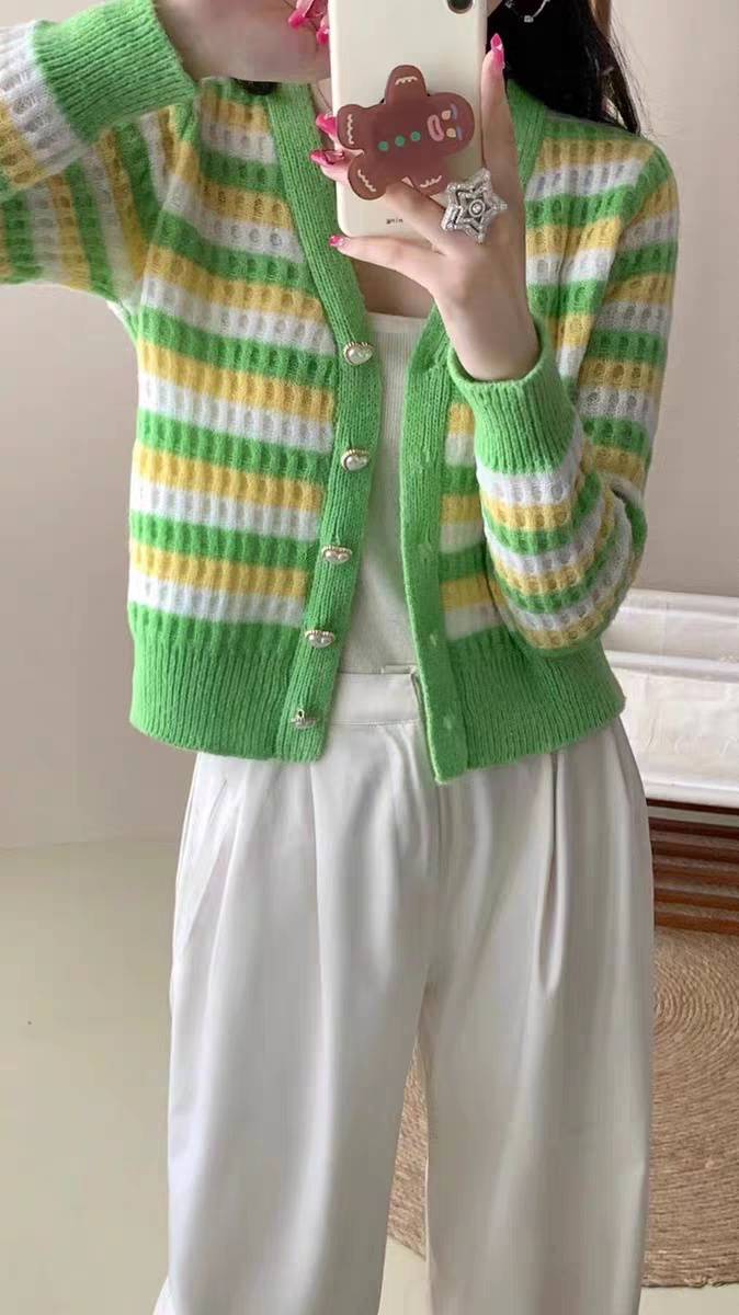 柜姿23年秋冬 学院风韩版宽松纯色针织开衫外套毛衣