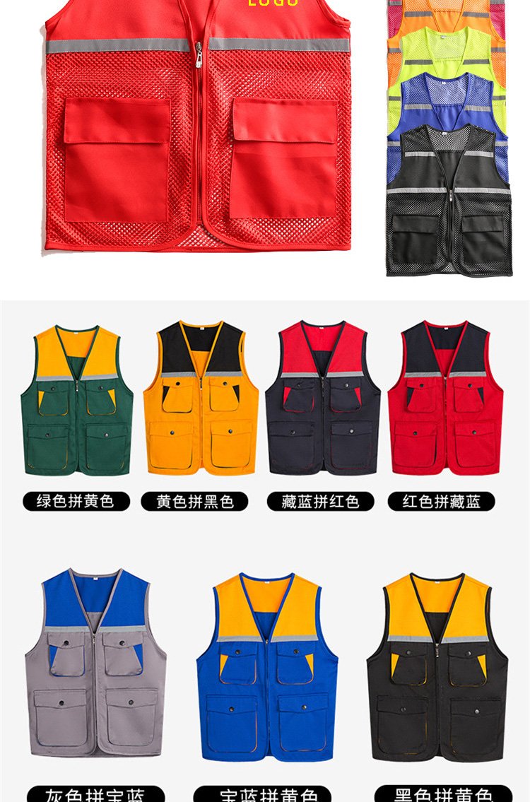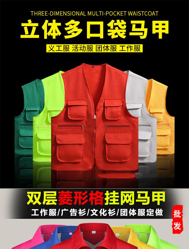 多口袋反光背心透气马甲志愿者义工活动衫透气轻薄