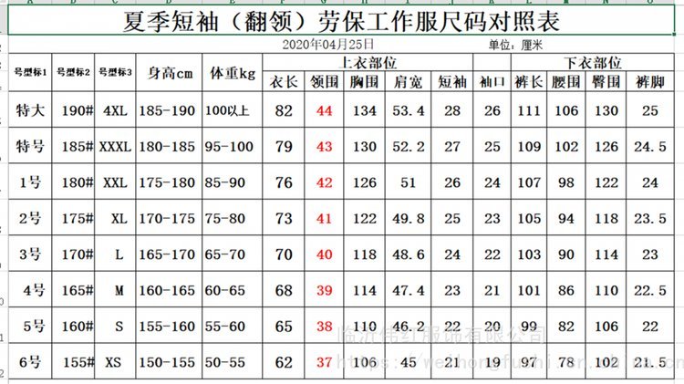 临沂伟红服饰有限公司生产订做夏季短袖劳保工作服装,订做工厂工作服、车间劳保服装。淄博张店南定志伟服装厂 生产订做加工夏季短袖劳保工作服装。欢迎新老客户光临惠顾。