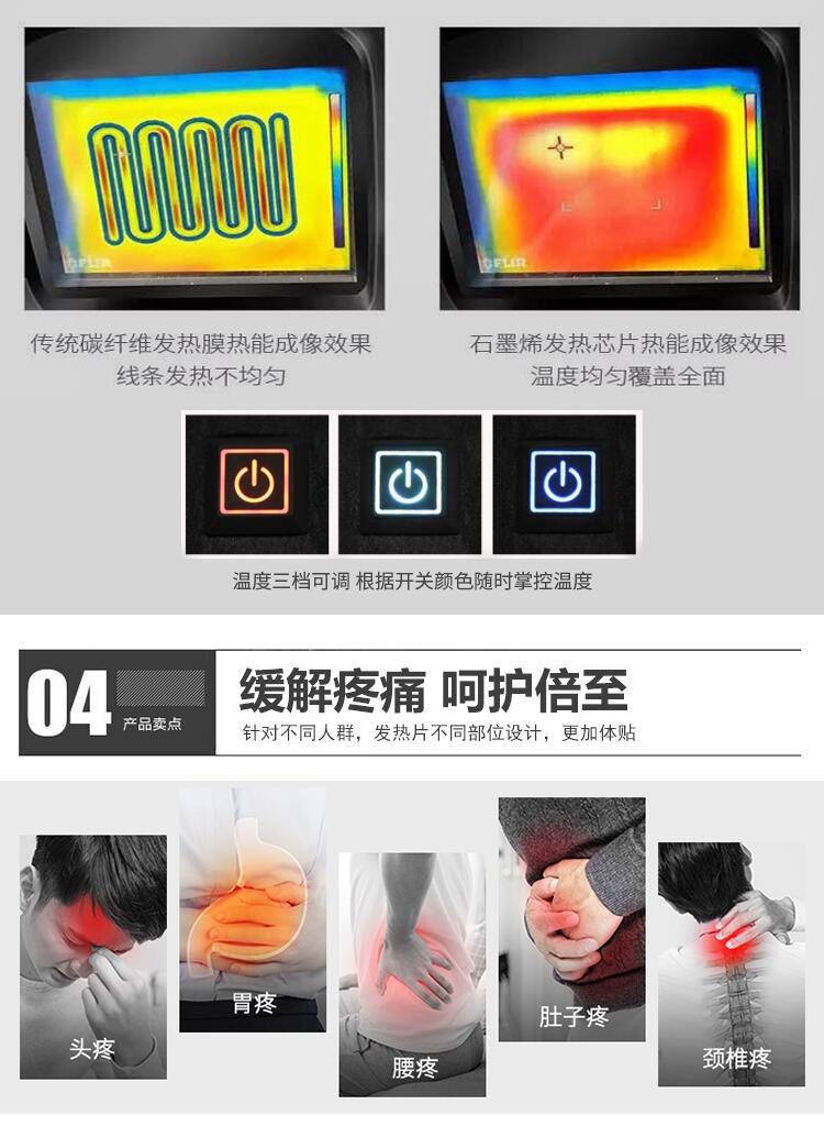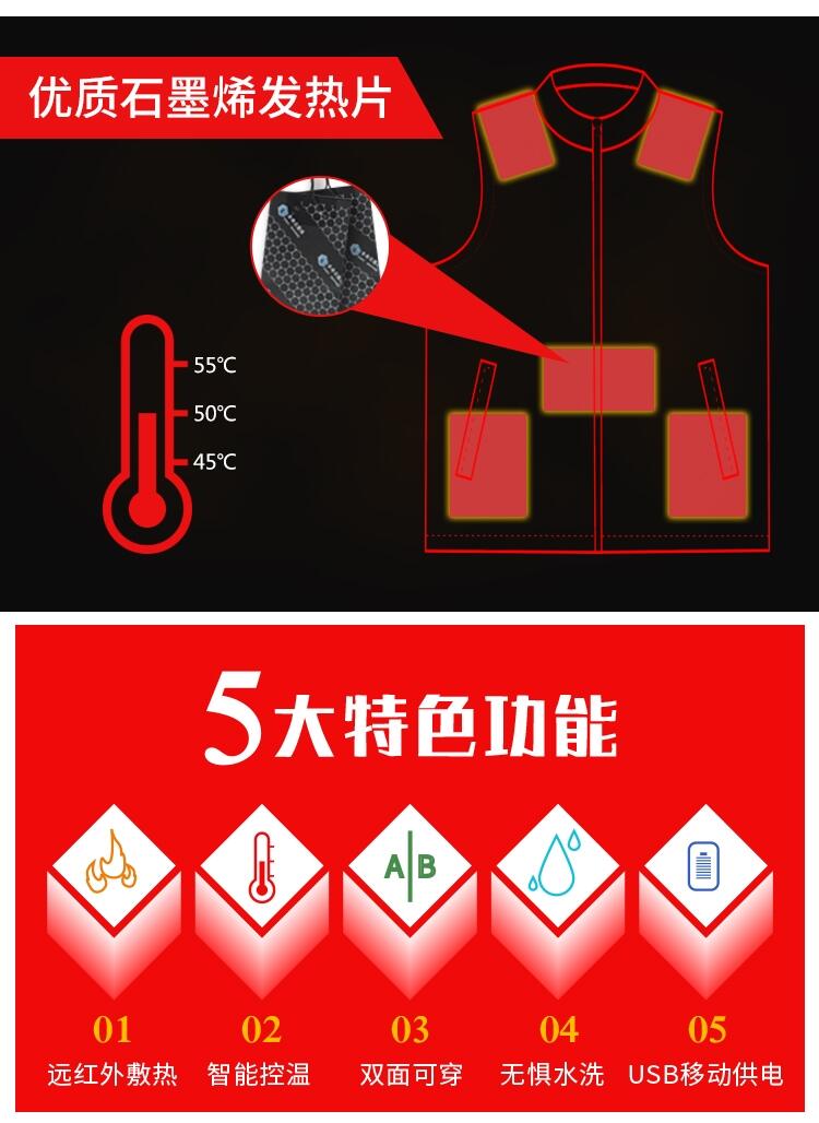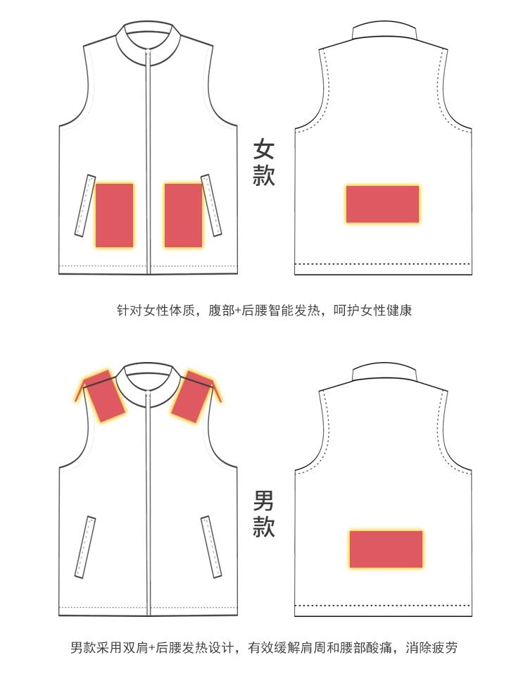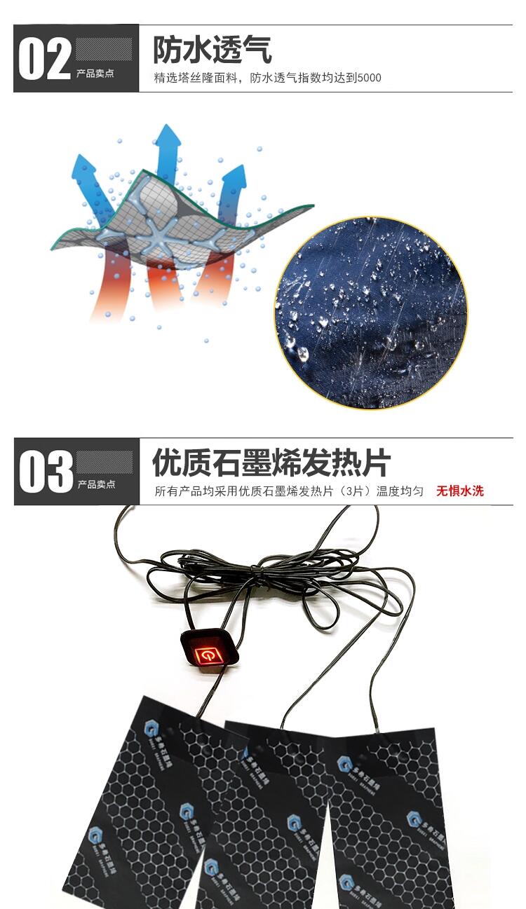 泰安浩宇服饰新款智能三挡控温加热马甲石墨烯碳纤维加热服