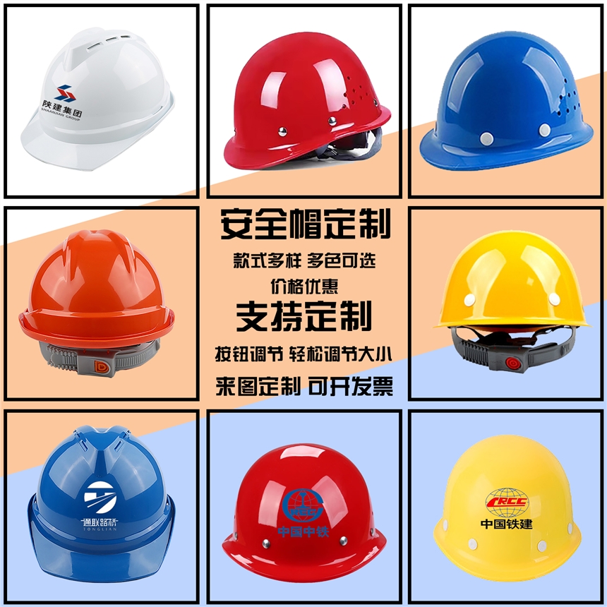西安玻璃钢安全帽定制工地加厚防砸头盔建筑施工劳保透气安全帽印字