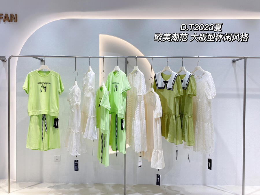 品牌介绍 : 【D.T】WOMEN23夏 面料穿着舒适,崭露潮流年轻女性的自信风,体现时尚、简约、潮流的品牌风格。