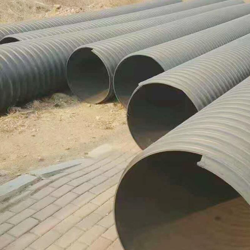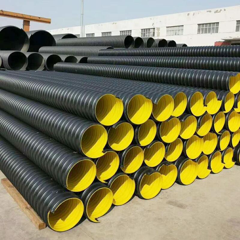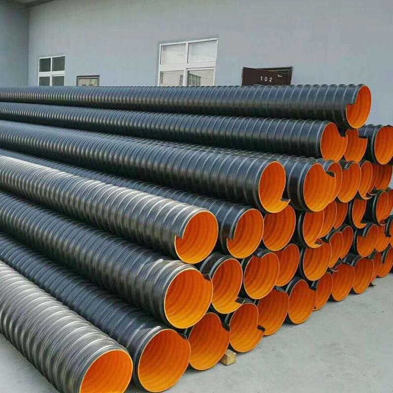 PE钢带增强聚乙烯PE螺旋波纹管规格300mm-2200mm、管材长度,分为6m-12m。适用于PE雨水管,PE排水管,PE污水管。