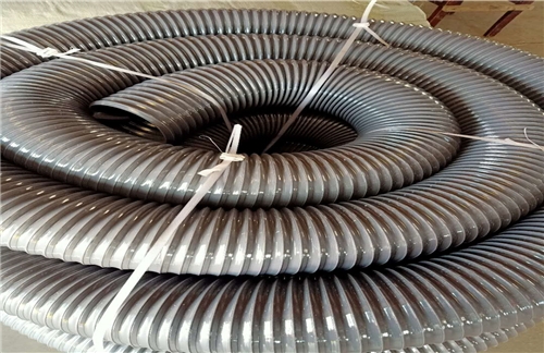 pu风管多用于空气管、水管和物料运送管。管壁有钢丝加强,和包塑金属软管相同有很强的抗压才华,高耐压和耐真空机能,高轴向强度;耐磨;出色的化学性,而且具有很强的排静电机能。结构:管壁特别聚酯,聚氧酯,螺旋丝,弹性钢丝.