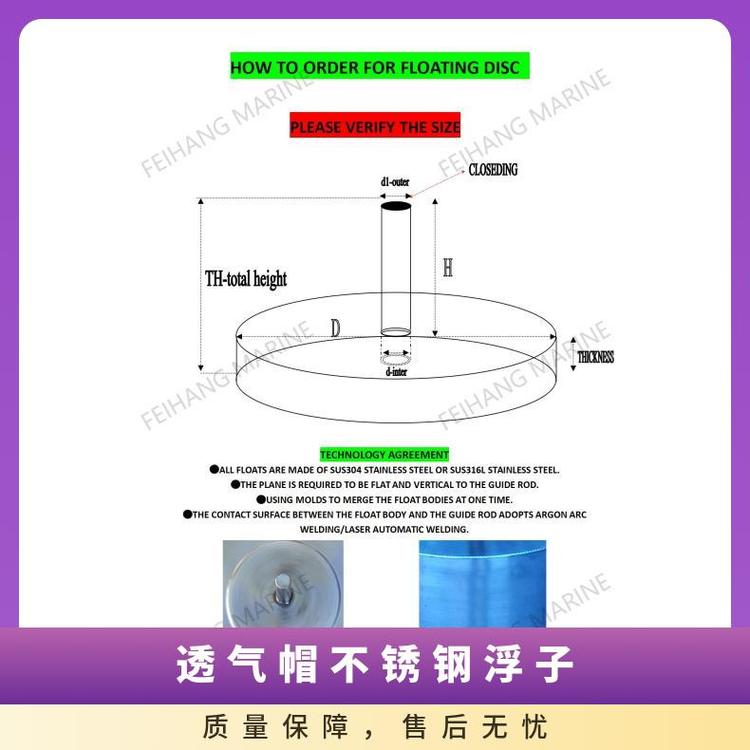 FLOATERDISC透气帽不锈钢浮子规格50-650A型号533HFB公称压力6bar