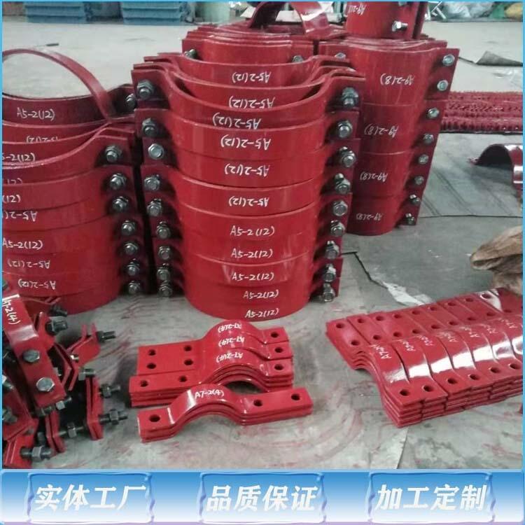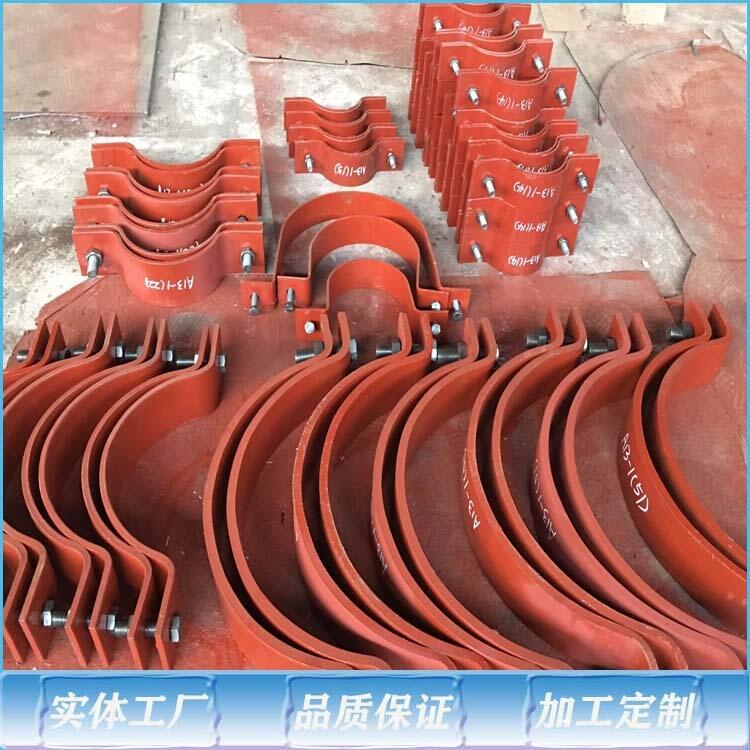 发电厂汽水管道支吊架设计手册(D-ZD2010)中的101型双孔管夹和管卡的作用相似,用于管道导轨上,可与管托相连接,对管道起到紧固、限制的作用。管夹的组成很简单,有一片或者两片扁钢制造的弧形管夹体和螺栓组成。按照螺栓孔数不同,又可以分为管夹的孔数决定了螺栓的用料。 管夹的螺栓数量决定名称的叫法,比如有管夹上有两个螺栓,可以叫做双螺栓管夹、双孔短管夹、双孔管夹。螺栓管夹上有三个螺栓就叫三孔管夹,三螺栓管夹、按照标准不同、尺寸不同,管夹有更多的分类。