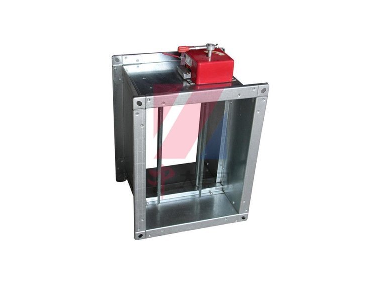 排烟防火阀主要一般安装在排烟系统的风管上,平时常闭,发生火灾时,烟感探头发出火警号,控制中心通24 V电给阀上电磁铁,使阀门迅速打开,或人手动迅速打开阀门排烟,当温度达到280℃时自动关闭。
