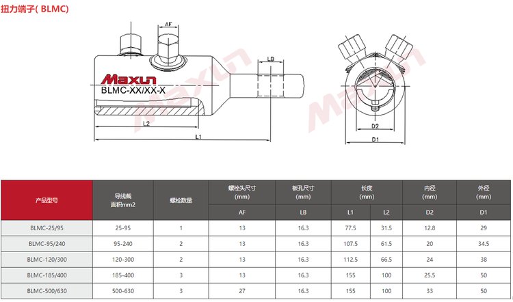 万协合金AUL BLMT-120/300螺栓型扭力端子机械合金线鼻子线耳 品牌 | 万协 | ||