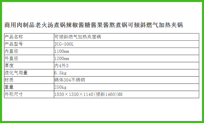 产品名称 | 可倾斜燃气加热夹层锅 | ||