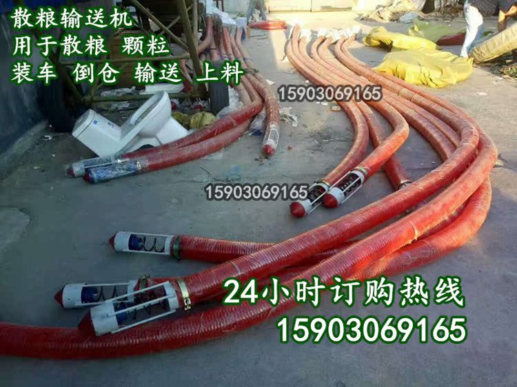 软管输送机结构特点 :(1)本机设计合进、结构紧凑,结实耐用,性能优良。(2)动力配置:220v/380电压,单相异步电机,适用场合更广泛,安全可靠,不易产生事故。(3)独特的螺旋弹簧结构,噪声小、生产率高。(4)整机重量轻,占地面积小,移动安装方便.(5)一机多用,可以吸送粮食,又可吸送颗粒状化肥、饲料、化工产品及其他无腐蚀性颗粒状物料。