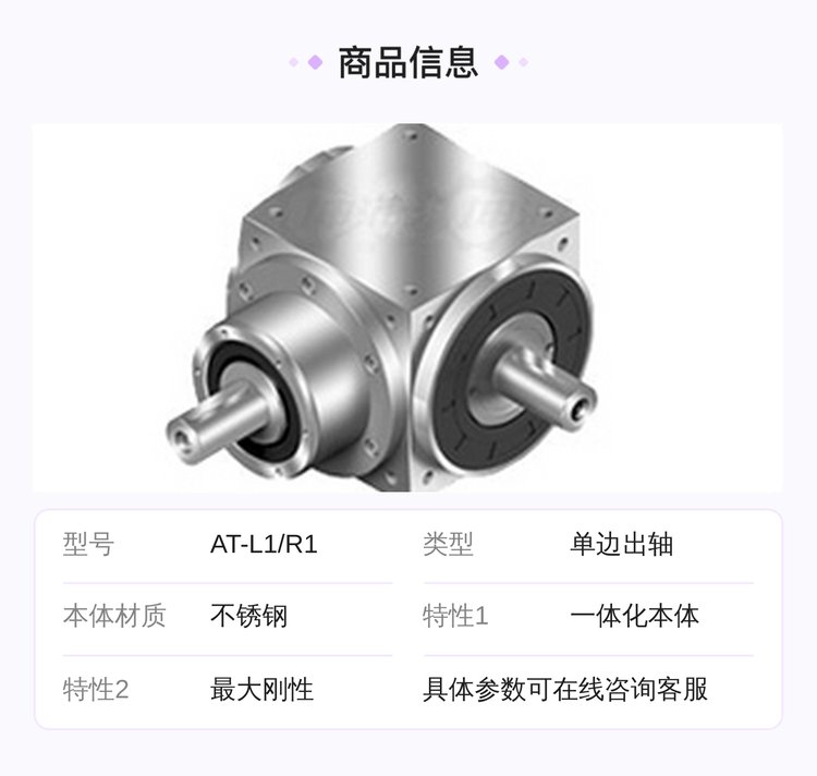 AT-L1/R1单边出轴型机电配件 一体化设计 耐腐蚀性强 本体材质 | 不锈钢 | ||