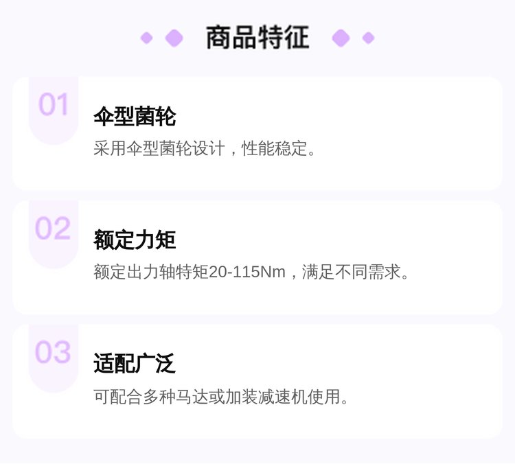 适配性 | 多种马达或加装减速机 | ||