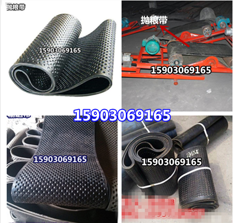无缝无接口的环形麻坑带 500宽抛粮输送带 是种无缝无接口橡胶材质的环形输送带通常被称作抛粮带 ,本产品生产过程中已将输送带制成无接头环形输送带,其特点是带芯接头处强力可达胶带本体强力的80%以上,胶带表面无明显接缺陷,因此胶带连转平稳,使用伸长小。