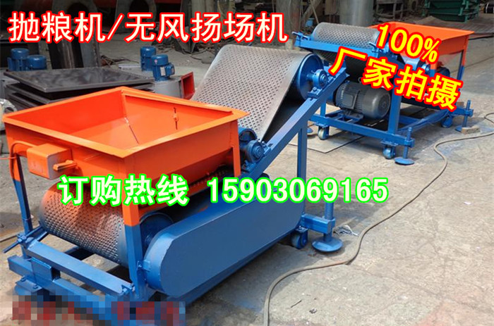 抛粮机工作原理:在高速运下迫使物料及惯性向前上方运动被皮带送出,由于皮带为特殊加工的多坑圆点输送带,输送中有定向作用,便于粮食的收集,复合式抛粮机移动方便,使用时需将水平固定丝杆升起,本机器的电机是铜线包电机优质耐用 电机功率5.5kw,使用三相电电机,抛粮机转速为每分1440转,每小时产量20-30吨,抛高3.5米,抛出距离可达6-8米