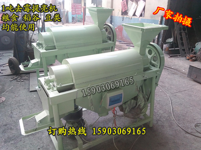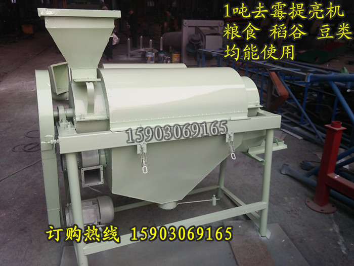 家用照明电小型鸽粮去霉机粮食去霉抛光机是家用照明电每小时1吨左右小型全封闭式小型粮食去霉 去污 去尘 去灰 黄豆泥花脸清理 水稻去芒 抛光 提亮的多功能机器通常被称作粮食去霉提亮机 本机器是根据螺旋轴的旋转使物料在流态化地过程中使物料相互置换运动与固定在螺旋轴上的棉布互相摩擦,快速清除霉点 污点使物料发光发亮的效果