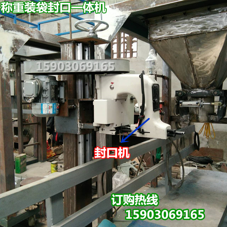 主要由物料进口、给料机构(闸门)、称量斗、夹袋机构、机架、吸风口、气动系统、传感器、控制箱、输送和缝包机构等组成。