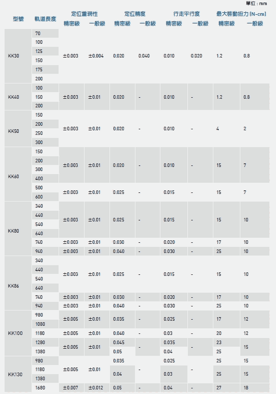 HIWIN上银KK模组系列特性: