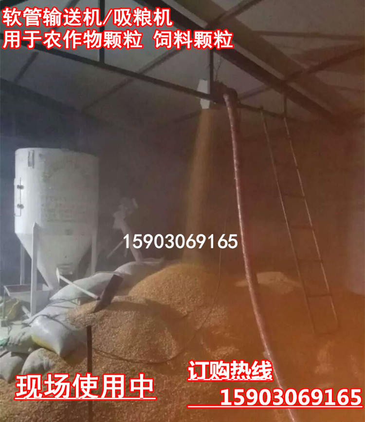 软管长距离粮食装车机是软管自吸式可装车 上料 成本低 携带方便 可弯曲盘起的长距离机器 ,用于多种农物粮食颗粒 塑料颗粒 塑料颗粒 等 长度有4米 6米 8米 10米 12米 (15-25米可定制)
