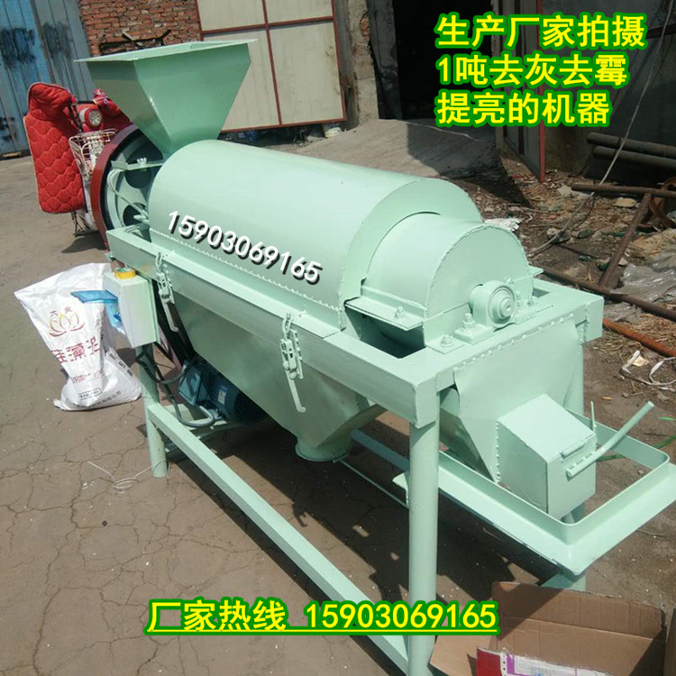 小型玉米霉点黑点抛光机 谷物去霉提亮机 灰尘污泥清理机是家用单相电每小时1吨快速清理玉米 麻子 黄豆 杂粮 谷物的多功能新型机器,可以把物料上的灰尘 粉末黑点 霉点 污点 泥花脸清理干净并且抛光提亮,本机器根据螺旋轴的旋转使物料在流态化地过程中使物料相互置换运动与固定在螺旋轴上的棉布互相摩擦,使物料达到理想的抛光效果