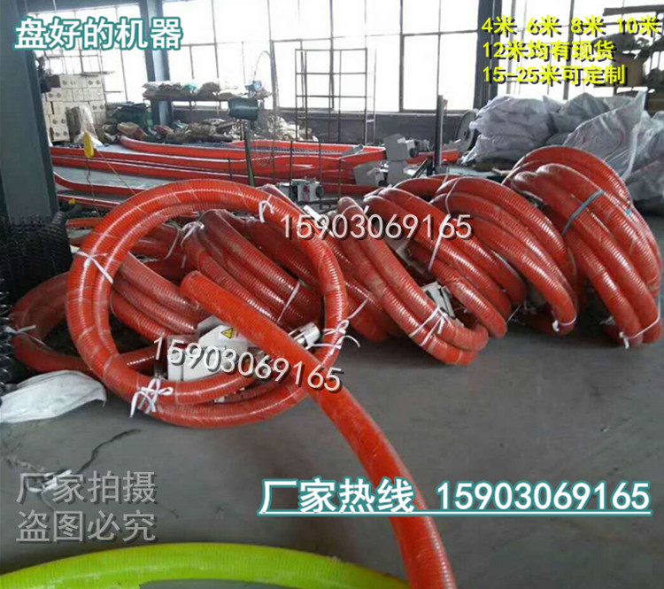 东北粮库用的抗寒耐磨软管自吸粮食输送机 稻谷黄豆装仓装车机是采用抗寒耐磨的牛筋管适合寒冷的东北农户软管不坏的顾虑可把水稻 小麦 玉米 散粮食颗粒直接输送或装车装袋 上料的多功能机器通常被称作软管输送机,本机器可装车 上料 成本低 携带方便 可弯曲盘起,长度有4米、6米、8米、10米、12米, 两项电管的直径可有直径50mm 100mm 120mm 产量分别为每小时2吨 5吨 10吨 ,管径产量长度不同价格不同