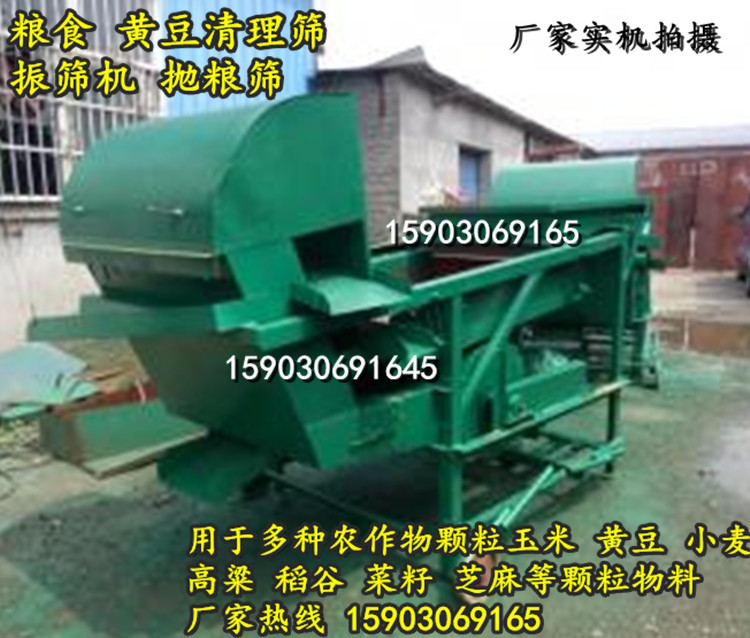 玉米黄豆除杂筛振筛机 清理黄豆粮食里杂质的多功能机器 本机器两层筛网 清选黄豆 玉米 粮食杂质在98%以上每小时8到10吨粮库种子站必用不可少的多功能清选振动筛可带抛粮通常被称作黄豆粮食清理筛 振筛机或抛筛机 下面是详细介绍