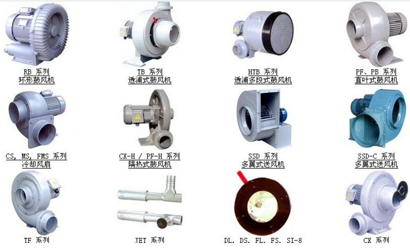 2、 吹风功能:瓦斯重油喷燃、洗瓶机吹干、纸布条吹送、干燥用空气刀、裁断机气垫、畜粪发酵爆气、电解液搅拌、养殖池氧气补给、冲床机便利冲压后取成型品、粉粒体输送、焚化炉排废、烟气吹吸、洗车吹干、印刷机强制干燥、洗净后吹干。