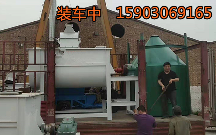 机器内物料在浆叶的作用下,既有圆周运动,又有轴向运动,根据物料的运动状态产生了对流搅拌、剪切搅拌和扩散搅拌;我们采用的是双螺带结构,根据饲料中需要添加10毫米左右的聚苯纤维,搅拌时不易分散这一特点,我们加装了一组飞刀,通过高速转动,将结团的纤维分散,达到理想效果.