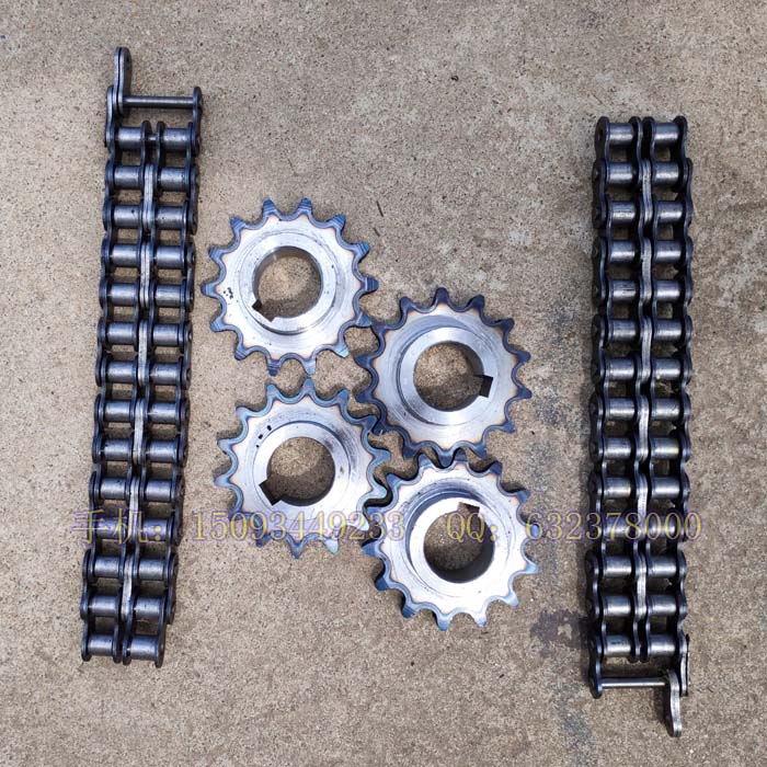 滚筒式水泥砂浆搅拌机14齿链轮链条联轴器变速箱连接链轮。小滚筒搅拌机上面的减速箱和传动轴相连接装置,常规为两个14齿的链轮对着,轴孔为32/34mm,外面包裹14节双排链条。搅拌机联轴器是指联接两轴或轴与回转件,在传递运动和动力过程中一同回转,在正常情况下不脱开的一种装置。有时也作为一种安全装置用来防止被联接机件承受过大的载荷,起到过载保护的作用。联轴器,用来将不同机构中的主动轴和从动轴牢固地联接起来一同旋转,并传递运动和扭矩的机械部件。手机:15093449233 QQ:632378000