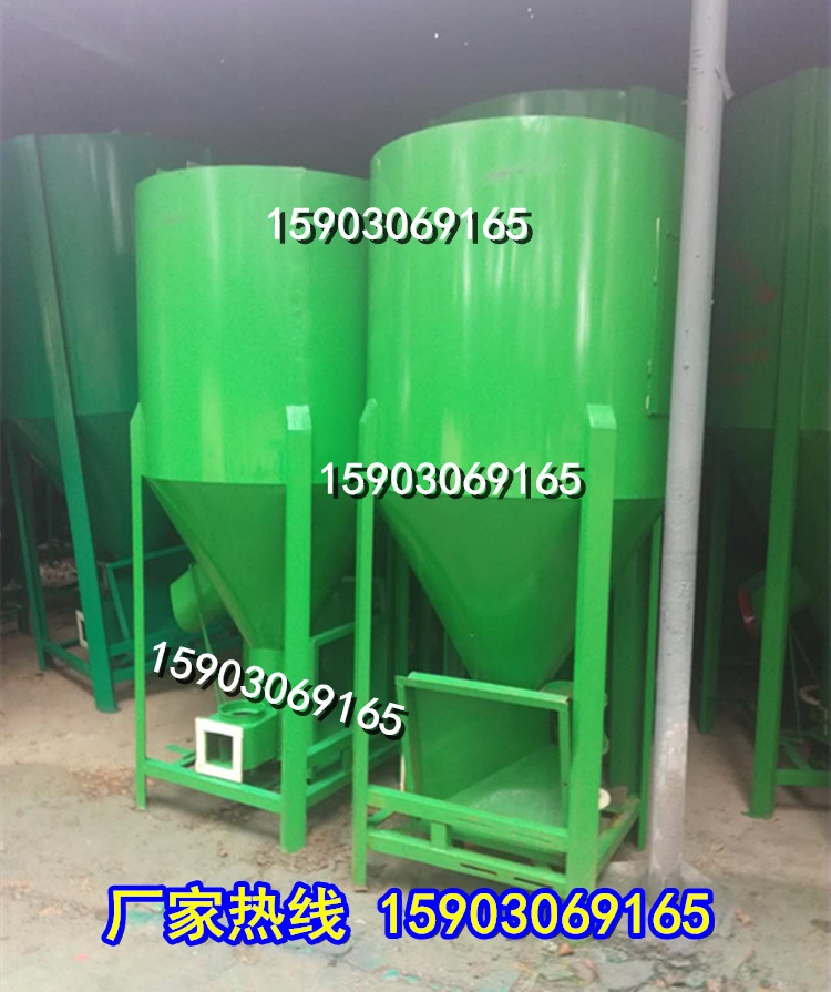 产品简介 这是专为农村饲养户、小型饲养场、中小型配合饲料厂设计的小型配合饲料加工设备,具有结构简单紧凑、一次性小投资、经济实用、维修方便,不需特殊生产场地等优点;混合均匀,可生产预混料、浓缩料、全价粉料等。工作流程: 玉米等需粉碎的物料由自吸式提升机送入粉碎机,粉碎后由粉碎机的风机经管道送入饲料搅拌机上方进料口落入机内。粉碎结束后,开启饲料搅拌机由饲料搅拌机下方进料口加入需要加的其余物料,由饲料搅拌机内的提升螺旋将搅拌物料从立式搅拌机的进料斗进入立式螺旋输送器,向上提升到达高级后,再以伞状飞抛,从混料筒四周下落,从套筒底部的缺口处重新进入立式螺旋输送器,再次向上提升,如此循环搅拌混合直到混合均匀,打开出料口将物料卸出。产量:1000公斤/40分钟