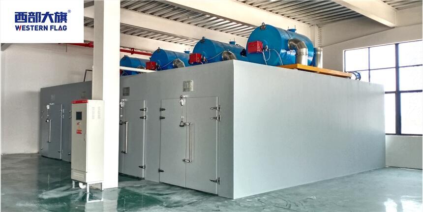 西部大旗燃气热风炉,是通过充分燃烧天然气获得高温气体再混合冷空气达到所需热风等热风炉装置,由于采用的是原装进口的全自动双段火或比调式燃烧机,输出的热风洁净无硫,可满足绝大部分的物料烘干脱水使用。其原理是:燃料通过燃烧器燃烧,产生高温燃气,炉外的冷空气在负压的作用下进入炉体,与高温气体充分混合后被抽出炉体进入烘干房或烘干机内,当热空气温度达到设定值时,大火头停止工作,小火头燃烧维持温度。当热风温度降低到额定的下限温度时,燃烧机大火头又会重新点燃运行,升温的速度可调节进风阀门实现。