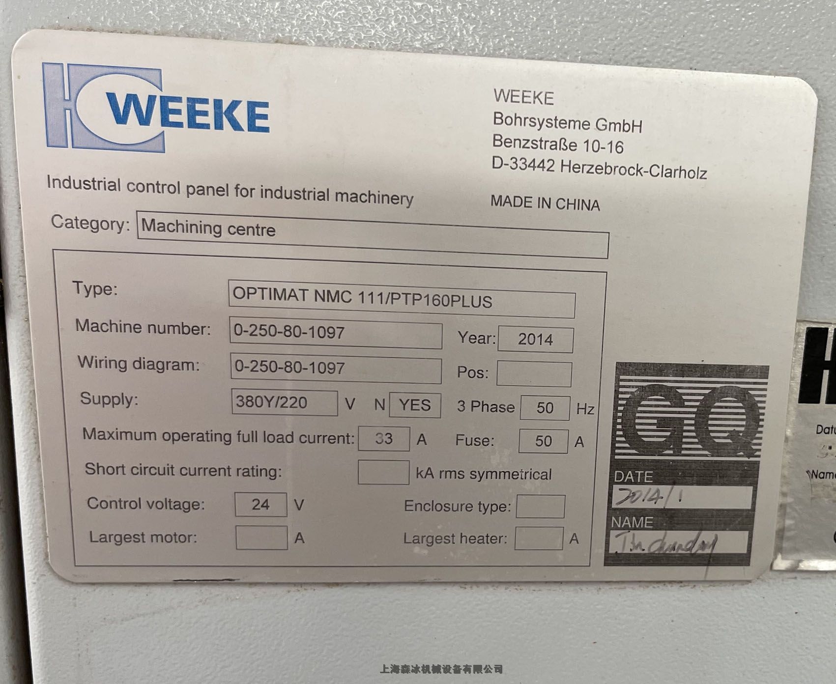品牌:豪迈 出厂日期:2014年