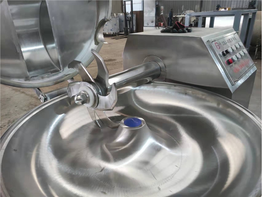 斩拌机采用不锈钢制成的,确保产品的卫生。刀片的高速旋转与料盘的旋转同时进行,使原料均匀的被斩碎或成泥状,并能使各种原料均匀的混合在一起达到好的乳化效果。多种速度配合使用可以达到更加理想的斩拌效果,自动出料的使用使工作更轻松,工作效率更高。而且该机器所有的部件都是存在的,所以在工作的时候不容易出现连带的情况,这样就使得机器出现故障的机率显著下降。