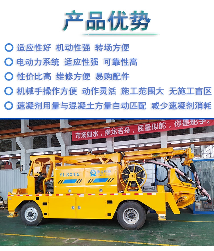 随着湿喷台车的出现,不仅解决了小型湿喷机不能长大混凝土的不足,还了施工人员的工作,效率还了混凝土的消耗。 3016湿喷机械手 湿喷台车 液压湿喷机械手设备价格。